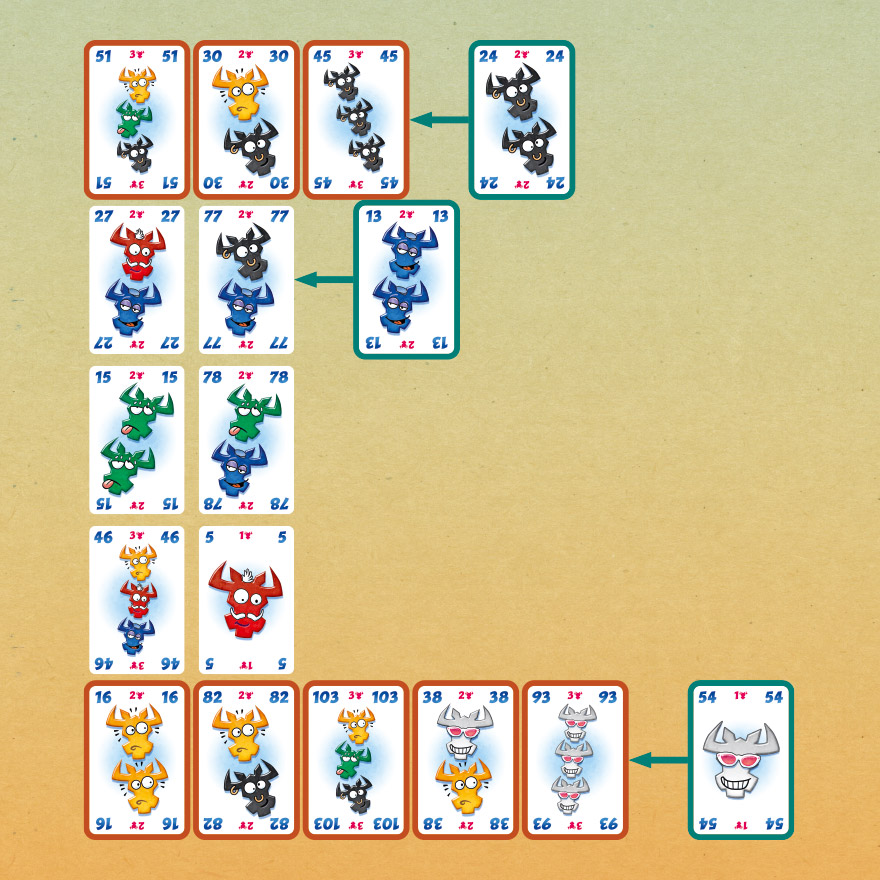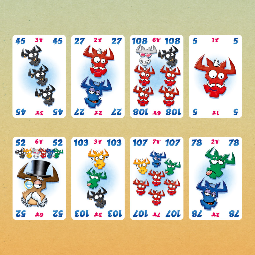 巧妙放置紙牌以避免拿到整列牌,因牌上牛頭都是扣分。古怪但靈活的老伯爵可以去到任何一列,幫您化險為夷,但如不慎得到將代價慘痛!遊戲結束時,牛頭最少的人獲勝!熱銷桌遊《誰是牛頭王》系列作品!